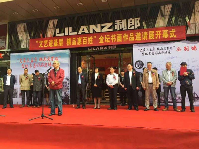 | 4月21日上午,由金坛区文联、区书画艺术交流促进会主办的“文艺进基层,精品惠百姓”金坛书画作品展在利郎商务男装店开幕。区领导王艳红、潘双林、杜跃华等参加开幕式。