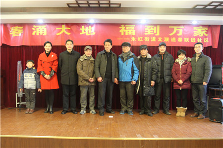 1月27日下午,由永红街道文联举办的“春涌大地 福到万家 文联送春联进社区”活动在锦阳花苑社区进行,永红街道党工委副书记、街道文联主席王元庆,宣统委员、副主席刘志刚出席活动。