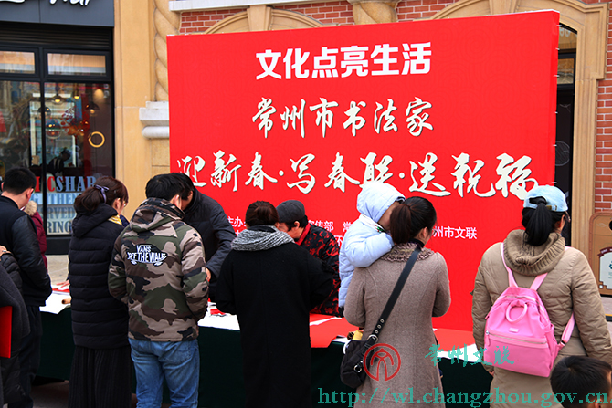 1月30日下午,环球恐龙城迪诺水镇人头攒动、热闹非凡,来自常州市书法家协会的20位书法家们挥毫书写着不同字体的春联。