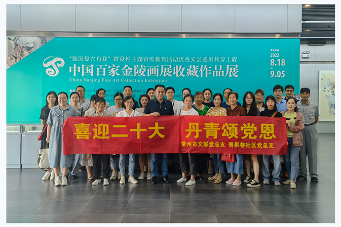 | 9月1日下午,市文联党总支与青果巷社区党总支联合开展“喜迎二十大 丹青颂党恩”主题党日活动,参观中国百家金陵画展收藏作品展画院美术馆展区作品,来自市文联和青果巷社区的党员、积极分子共30余人参加活动。