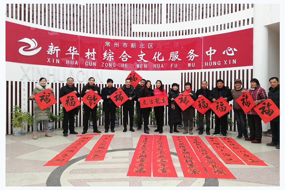 | 1月22日上午,市民协楹联学会与新北区新华村委等单位联合举办的“如虎添翼迎新春”送春联活动在新华村综合文化服务中心举行。常州市民协楹联学会、魏村街道关工委、新华村委的相关领导和新华实验小学书法社团的学生参加了活动。