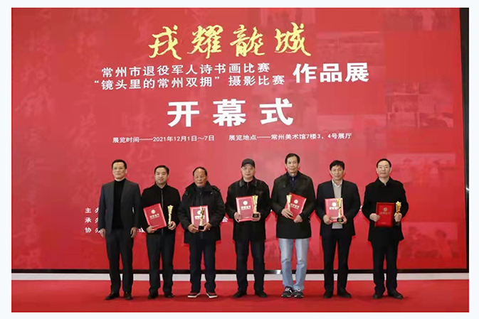 | 12月1日上午,“戎耀龙城”退役军人诗书画比赛、“镜头里的常州双拥”摄影比赛作品展开幕式暨颁奖仪式在常州美术馆举行。副市长许峥宣布开展,市文学艺术界联合会党组书记、主席舒文出席活动并为获奖者颁奖。