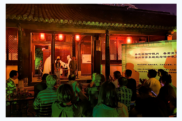 | 9月20日,由常州市苏东坡研究会、常州市朗诵吟诵艺术协会等单位主办的“藤花旧馆吟明月,眷君堂前思东坡”中秋主题诗会在藤花旧馆举行,来自我市40余位苏东坡文化爱好者参加了活动。