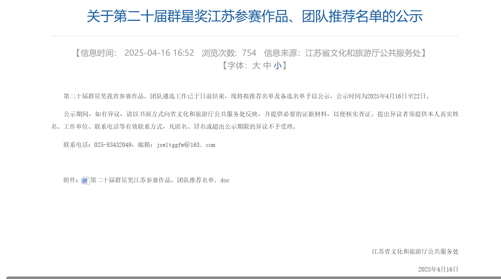 | 近日,常州华声合唱团入围第二十届“群星奖”江苏参赛作品、团队推荐名单。