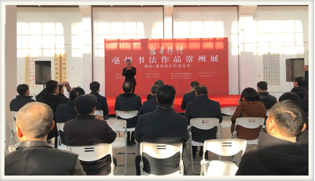 | 12月22日上午,由常州市文联和亳州市文联主办、常州市书协和亳州市书协承办的“翰墨抒情”亳州书法作品展在常州书法展览中心开幕。常州市文联党组书记、主席舒文,副主席池银合,副主席、中国书协学术委员、中国标准草书学社副社长叶鹏飞;亳州市文联党组书记 |