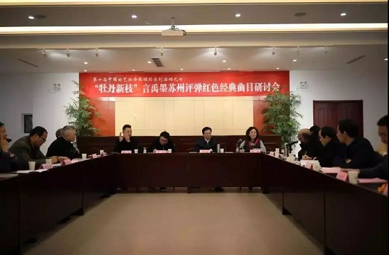 | 1月9日下午,由中国曲艺牡丹奖组委会主办,江苏省曲协、苏州市曲协承办,常州市曲协协办的第十届中国曲艺牡丹奖颁奖系列活动之七——“牡丹新枝”言禹墨苏州弹词红色题材曲目研讨会在苏州举行。