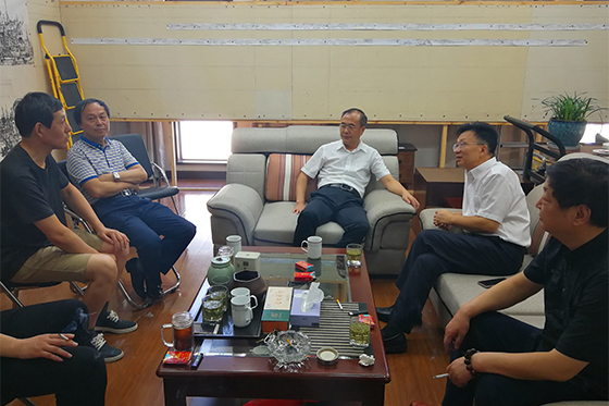 | 7月18日,江苏省文联党组成员、副主席、书记处书记刘旭东偕同省美协副秘书长佘玉奇冒着酷暑,到常州画院走访慰问我市美术工作者高鸣。