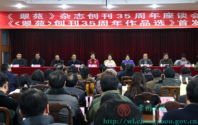 | 1月17日下午, 《翠苑》杂志创刊35周年座谈会暨《〈翠苑〉杂志创刊35周年作品选》首发式在市文联举行。中共常州市委常委、宣传部长徐缨,江苏省作协主席范小青,江苏省新闻出版广电局调研员石勤,中共常州市委宣传部副部长朱明辉,常州市文联党组书记、主席荣凯 |