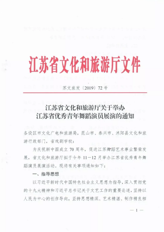 转:关于举办江苏省优秀青年舞蹈演员展演的通知