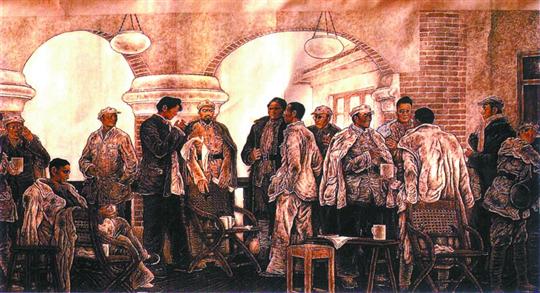 | 油画作品中的遵义会议现场。