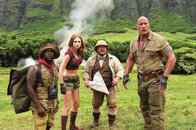 时隔23年,由杰克·卡斯丹执导,道恩·强森、杰克·布莱克等主演的《勇敢者游戏:决战丛林》上周五登陆国内院线,目前全球票房已突破六亿美元。图为该片剧照。   时隔23年,新版《勇敢者游戏:决战丛林》于上周五全面登陆国内院线,上映三