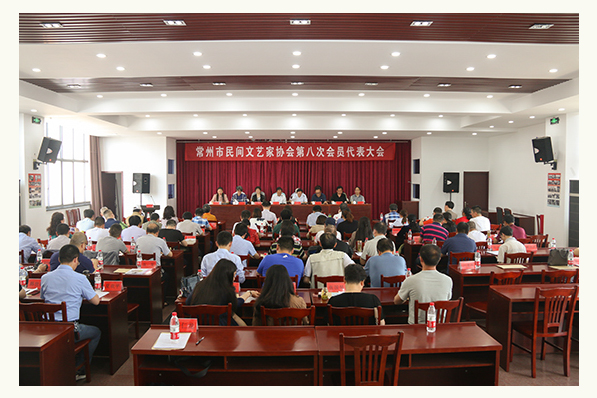 | 5月23日下午,常州市民间文艺家协会第八次会员代表大会在市文联顺利召开,来自全市各行各业的70多名会员代表参加大会。市工艺美术家协会主席沈华强代表兄弟协会致贺辞。