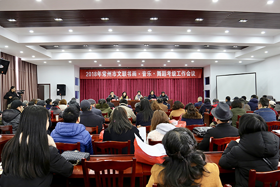 | 3月20-21日,2018年常州市文联书画、音乐、舞蹈考级工作会议在文艺大厦召开。市文联副主席池银合出席会议。来自全市各个培训学校、培训点近400名考级指导教师参加会议。