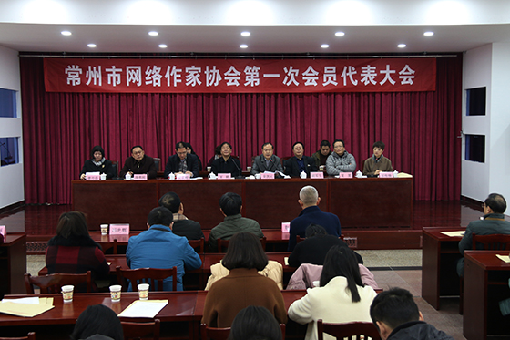 | 2017年12月28日上午,常州市网络作家协会第一次会员代表大会在常州文艺大厦六楼会议室召开。江苏省作协党组成员、书记处书记王朔,江苏省作协创联部主任吴正峻,市文联领导荣凯元、胡军生、周勇刚、沙滩,常州市作协主席团成员及常州市网络作家骨干60余人出席 |