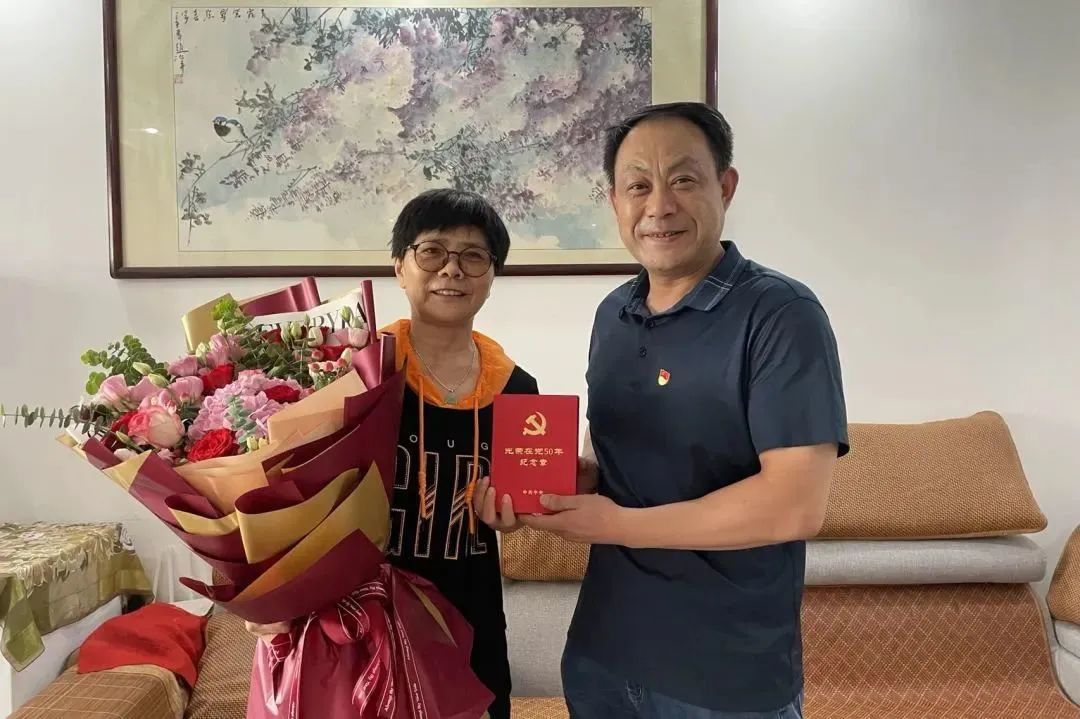 | 6月29日,市文联党组成员、专职委员、党总支书记周勇刚走访慰问了老党员肖春娣,为其颁发了“光荣在党50年”纪念章。