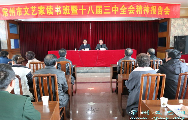 为深入学习贯彻党的十八届三中全会精神,12月13日上午,常州市文艺家读书班暨十八届三中全会精神报告会在市文联六楼举办。常州大学教授、市专家咨询委员会委员、市人才评价推荐中心专家委员、市十八届三中全会宣讲团成员丁恒龙应邀授课,市委宣传部副部长、文联党组书记孙春伟主持报告会。各协会主席、秘书长,产业文联和挂靠社团负责同志,市文联机关、研究院同志聆听了此次报告会。
