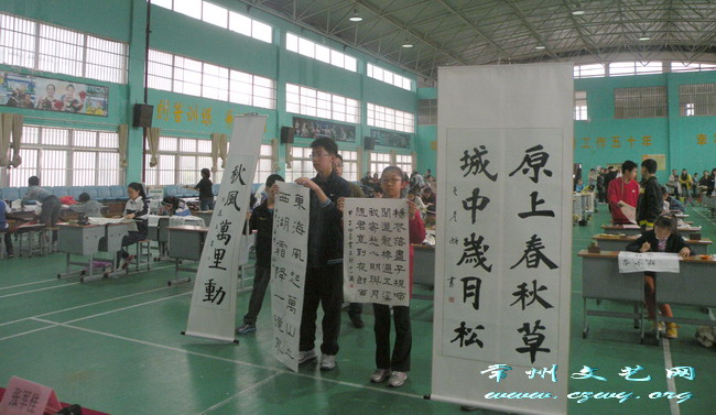 比赛分三轮进行,选手们拿出自己全部精力和才华,现场书写作品,她们坐姿端正,动作娴熟,态度认真 。作品完成后由工作人员向全场选手和观众展示作品,评委当场评分、亮分,录入电脑,计算出总分和均分,即时排出名次。经过三轮比赛,共评出一等奖30名,二等奖60名,三等奖90名以及优秀团体奖。常州市书协副主席卢海洲先生在现场说,书法是中国文化的国粹,是中国艺术的瑰宝,书法教育是实施素质教育的有效途径之一。为进一步推动我市“百千万”工程,促进常州市各中小学开展书法写字教育教学研究,常州市教育学会书法委员会、常州市书法家协会青少年分会特举办本次比赛,以发掘新人,激励后学。