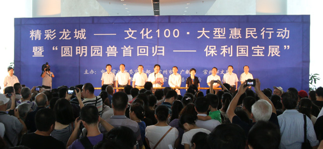 8月30日,以1.5万余人争睹“圆明园兽首回归——保利国宝展”为开端,“精彩龙城——文化100·大型惠民行动”在常州博物馆启动。市领导徐缨、杨建、方国强、居丽琴出席仪式并与各界模范代表共启活动。