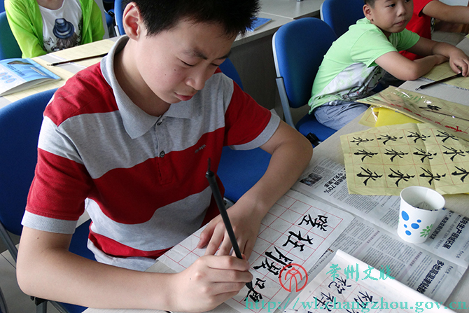 自7月中旬至8月底,红梅街道文联于每周二、周四、周五下午,在街道部分社区书画室,开展公益性暑期青少年书法培训班。本次培训班为期1个半月,培训人数达到近百人次,由常州市书法家协会会员、常州老年书协副主席兼副秘书长、红梅街道文联书画协会会长贺贤惠担任主讲老师。培训从正确的握笔姿势、毛笔的分类、米字格的使用开始教起,就笔画书写顺序、运笔原则等书法基本入门知识进行讲解授课。讲解中,贺贤惠老师以“永”字为例,带领大家进行练习,并强调字虽简单却包含了最基本的八种笔画,有助于提升大家对各基本笔画的掌握。