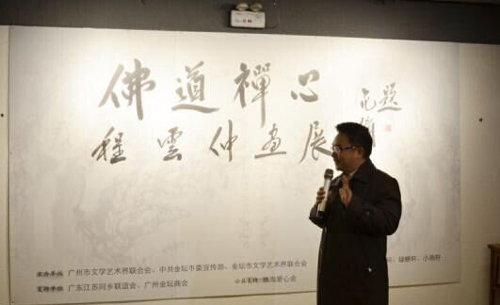 12月27日由广州市文学艺术界联合会、中共金坛市委宣传部、金坛市文学艺术界联合会联合主办,绿蝉轩、岭南实验空间、小雨轩承办的佛道禅心——程云仲作品展在广州美术学院昌岗校区内岭南画派纪念馆隆重举行。广州市委宣传部副部长、广州市文联党组书记伍第政及金坛市委宣传部副部长、市政府新闻办主任徐忠敏等领导纷纷为开幕式致辞。