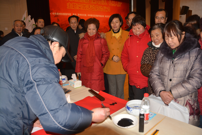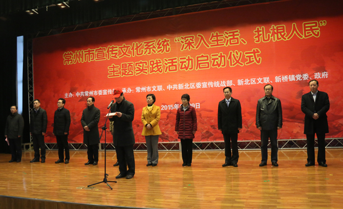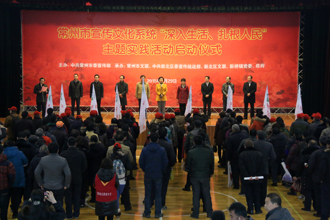 1月29日,由市委宣传部主办、市文联等单位承办的常州市宣传文化系统“深入生活、扎根人民”主题实践活动启动仪式在新北区新桥实验小学体育馆举行。市委宣传部、常州日报社、常州广播电视台、市文广新局、市文联、新北区委宣传部、区文联、区社会事业局和新桥镇主要领导出席了启动仪式。市委常委、宣传部徐缨部长讲话并宣布“深入生活、扎根人民”主题实践活动正式启动。