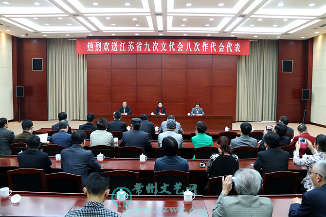 4月22日上午,我市举办欢送会,为即将赴南京参加江苏省文学艺术界联合会第九次代表大会、省作家协会第八次代表大会的41名代表送行。市委常委、宣传部长徐缨出席欢送会。