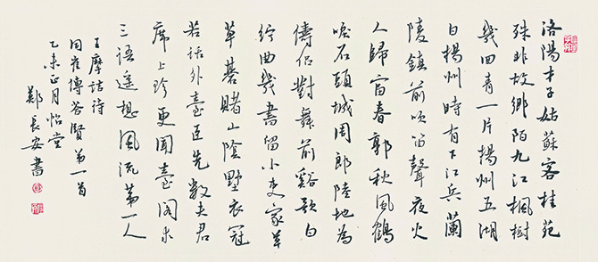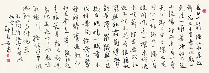 去年,郑长安书法巡回展已在广州、深圳、徐州等地展出,120多件书法作品缤纷亮相,其中有一部分被博物馆、书法院、图书馆和藏家收藏。南京是本次巡回展的第四站,作品以行草为主,其中有一半为近半年精心创作。此后,还将到哈尔滨、宿迁等地巡展。