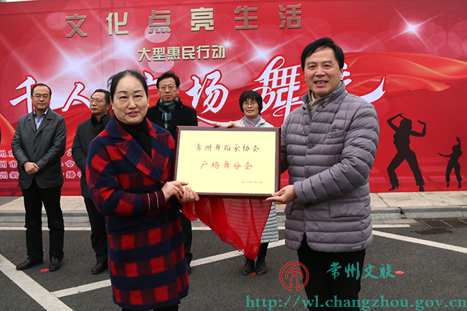 12月27日下午,由常州市文联、常州日报社主办,常州市舞蹈家协会、环球恐龙城迪诺水镇协办,常州新民文化传播有限公司承办的“文化点亮生活”千人广场舞秀在迪诺水镇举行,常州市舞蹈家协会广场舞分会同时揭牌。中共常州市委宣传部副部长朱明辉,常州日报社社长、党委书记黄四清,常州市文联主席、党组书记荣凯元,副主席池银合,专职委员周勇刚,秘书长沙滩,常州恐龙园股份有限公司总裁许晓音,常州市舞蹈家协会主席闵建敏出席活动。