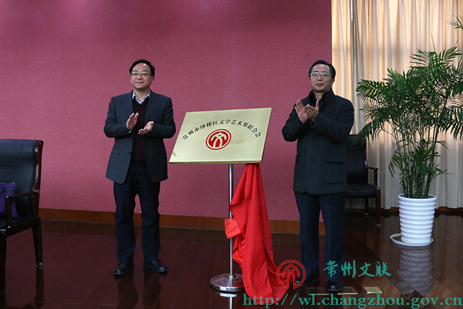 市委宣传部副部长朱明辉与钟楼区委书记赵正斌共同为区文联揭牌,区科协主席马建宁代表全区群团组织致贺词。