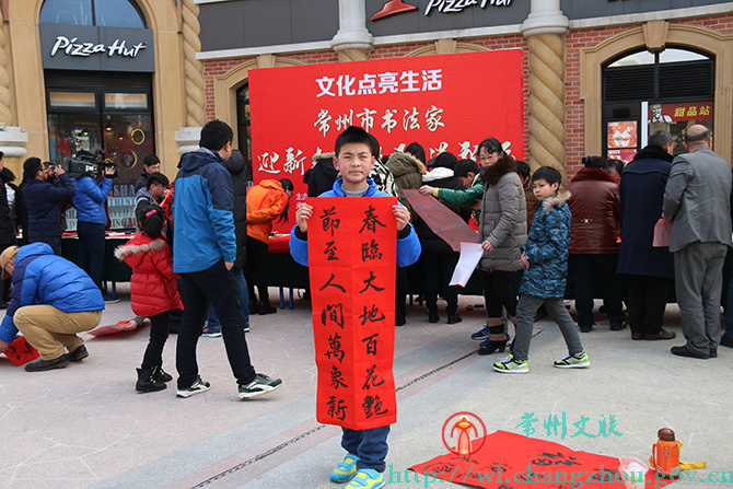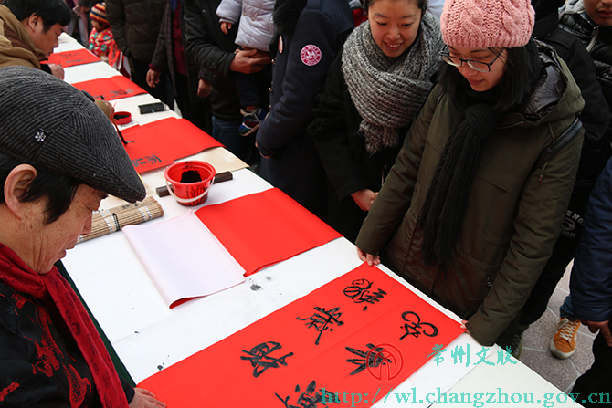 “这副对联内容新、意义好,帮我写上这副!”安徽来常打工的小李略带腼腆地说,“过几天要回老家过年,能从常州带上一幅书法家亲笔书写的春联贴在老家门上,爸爸妈妈一定很开心!”