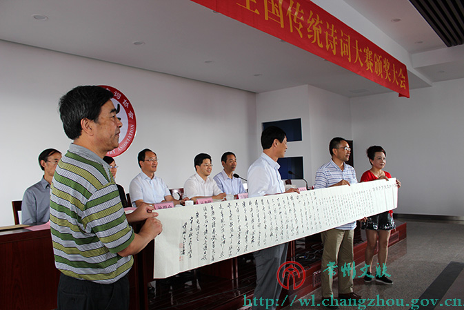 活动现场,特等奖和二等奖获得者代表作了发言,大赛组委会还向常州工学院、常州大学国学院、常州市图书馆和常州方志馆赠送了《“舣舟杯”1-4届传统诗词大奖赛获奖及入选作品集》。作为全市“文化100”大型惠民行动项目之一,本次大赛除举行颁奖大会,出版作品集以外,还将于10月举办“诗词创作研讨会”、“部分获奖作品吟诵点评会”,并邀请书法家书写获奖作品举办“诗书合璧展”。