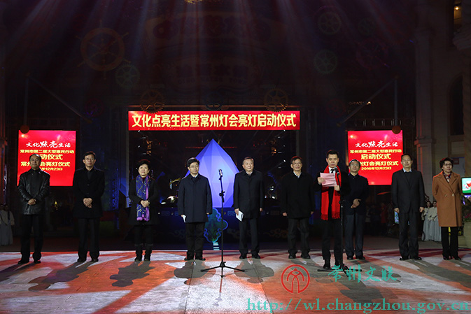 12月23日晚,环球恐龙城迪诺水镇流光溢彩、五彩缤纷,万盏花灯同时点亮,由中共常州市委宣传部、常州市文广新局、常州市文联、龙城旅游控股集团共同主办,常州日报社、常州广播电视台协办的第二届“文化点亮生活”大型惠民行动暨常州灯会由此启动,市委常委、宣传部长、科教城党工委书记徐光辉,市人大常委会副主任邵明,市政府副市长方国强,市政协副主席居丽琴以及市委宣传部、常州日报社、常州广播电视台、市文广新局、市文联、创意产业基地等单位的领导出席启动仪式。