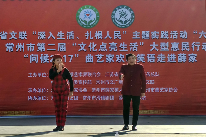 本次活动是江苏省文联“深入生活 扎根人民”主题实践活动“六个一”活动,也是全市第二届“文化点亮生活”大型惠民行动项目之一,江苏省曲艺家协会副主席、秘书长芦明,常州市文联副主席胡军生以及薛家镇的党政领导观看了演出。
