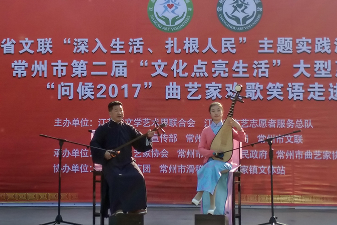 2月11日下午,薛家中心广场欢歌笑语,掌声雷动,洋溢着节日的喜庆。由江苏省文联、江苏省文艺志愿者服务总队、中共常州市委宣传部、常州市文联等主办,江苏省曲艺家协会、常州市薛家镇人民政府、常州市曲艺家协会承办的“问候2017”元宵曲艺演出在此举行,来自省、市曲艺家协会的艺术家们与薛家近千名群众一起,共度元宵佳节。