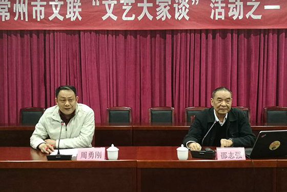 4月26日下午,由常州市文联策划组织的“文艺大家谈”首场讲座在六楼会议室举办,常州市历史文化名城地方文史专家组组长、常州大运河文化带建设智库专家、常州市口述历史研究院院长、国家艺术基金评审专家、常州市戏剧家协会名誉主席邵志强为大家讲授常州运河文化。市文联机关、事业单位全体人员及各文艺家协会、文艺社团代表、荷花池街道机关第一、二党支部近80人聆听了讲座。