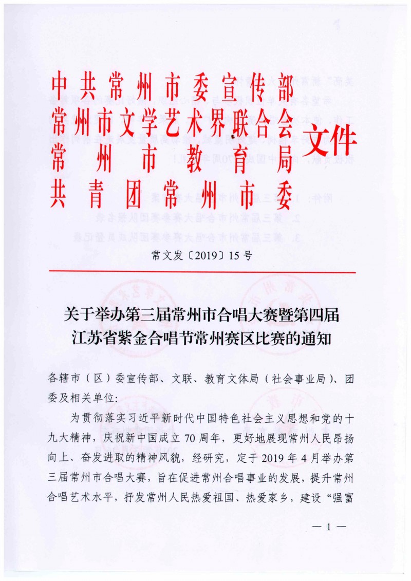 关于举办第三届常州市合唱大赛的通知