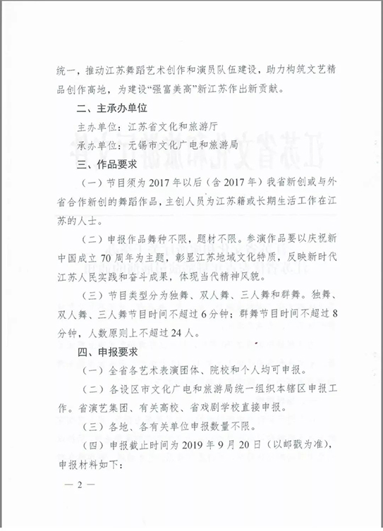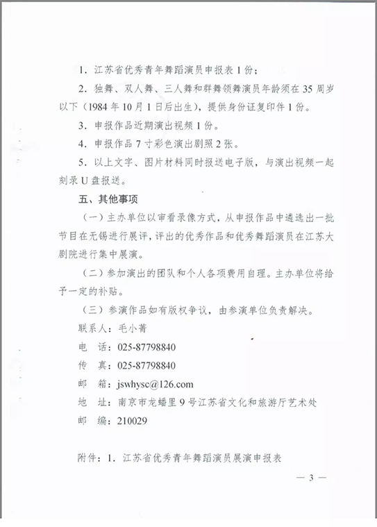 转:关于举办江苏省优秀青年舞蹈演员展演的通知