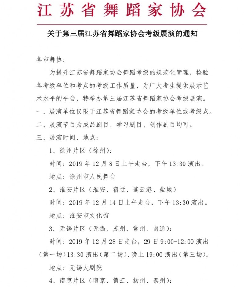 转:关于第三届江苏省舞蹈家协会考级展演的通知