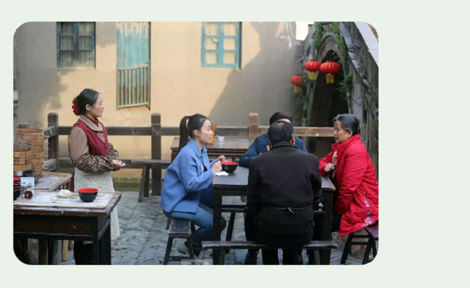 如果说许巧珍是在时代的大开大合中,完成了个人的精神成长,那么电影中的年轻实习生“春天”,则经历了“润物细无声”似的精神洗礼。春天选择到桂香街实习,是因撰写毕业论文要做实地调研工作。所以当孙大宝问她是否会留下来时,她并没有给出肯定答复。但是,在桂香街,春天遇见了许巧珍,可以说,是遇见了她成长的引路人。在桂香街实习的日子里,春天近距离接触到了许巧珍,电影从她的视角叙述着许巧珍带给她的震撼与感动。春天跟随着许巧珍,走在桂香街的角角落落,走进桂香街的家家户户。她看到了戏曲艺术家潘柏煊固执中对戏曲艺术的坚守,体会到了做豆腐生意的潘柏煊念叨背后的艰辛生活,感受到了大龄单身旗袍热爱者戚小薇渴望被理解的内心,懂得了不愿接受别人无偿帮助,靠自己制作售卖梳篦生活,仍心心念念上交党费的抗美援朝老英雄孙老太爷的人生信仰……从中,春天意识到社区工作者对每一个社区百姓的重要意义。同时,春天在协助许巧珍完成大运河申遗过程中,悟到了社区工作者在大时代中发挥的看似微小实则春风化雨的作用,她的人生观世界观价值观得到了升华。所以,春天在阅读了解许巧珍年轻时经历及与她近距离接触的过程中,深受其精神的感染,毕业后,乘着小船,来到桂香街,自愿成为了一名社区工作者,继承着许巧珍未尽的事业,春天的转变也折射出新时代无数个“春天”精神的成长正在广袤的中华大地上悄然发生。