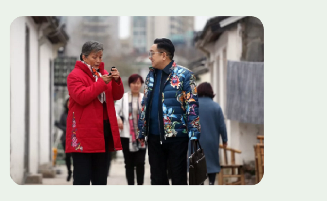 电影镜头伊始,红衣奶奶许巧珍推开窗户,映入眼帘的便是运河边上的人家,桂香街里的老百姓路过,朝着窗户打个招呼,尤为亲切。拆迁低保找工作、暴风雨夜房子塌陷、一碗豆腐花中了解民生、几个梨子里缓解矛盾……许巧珍的工作在桂香街老百姓的衣食住行和喜怒哀乐中,立体丰满起来。电影《桂香街》不再是“宏大叙事”的史诗创作,而是着力于对老百姓生活表象化、琐屑化的图景再现。看着电影,迎面扑来的便是热气腾腾的现实生活,是每一个“我们”都有可能遇到的小欢喜,小感动、小困惑,甚至是小自私、小意外。贾声援做义工在运河中捡垃圾不幸受伤,后又因违建地下室致暴雨来袭房屋坍塌被困,潘柏煊搬迁老宅需要有人做思想工作,许巧珍都是第一时间赶到现场,80多岁的她,只要在现场,便是老百姓的主心骨,从不辜负大家对她的信任。“亲历性、真实性、非陌生感,回避深刻”,电影实实在在还原了桂香街里的市井气息,老百姓普通而又真实的生活仿佛就在我们身边。