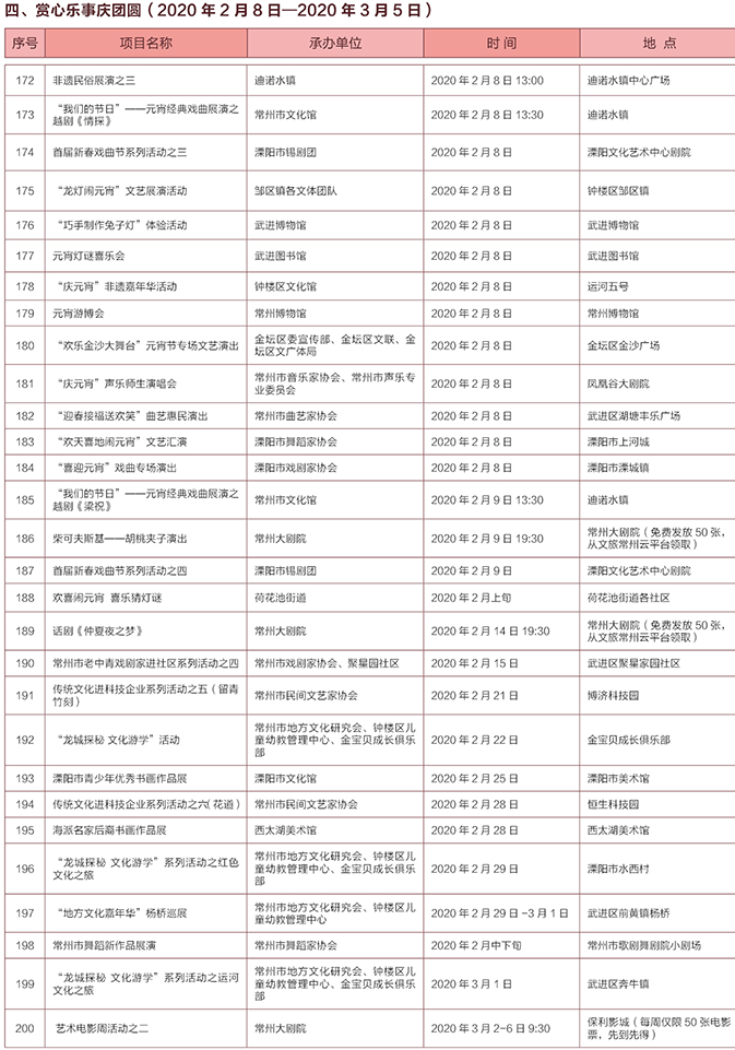 文化点亮生活时间表(2月8日-3月5日)