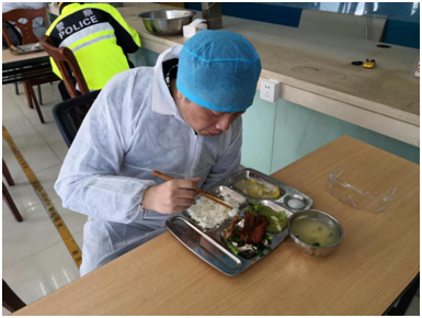 (沈程连续执勤六个小时滴水未进,这是刚下岗在用餐)