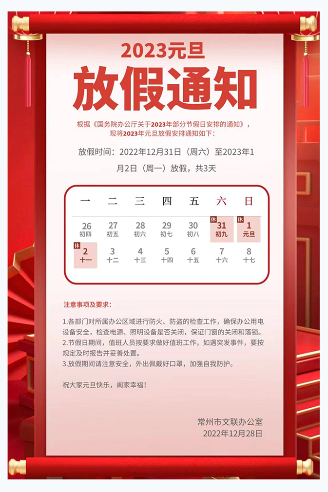 2023年元旦放假通知