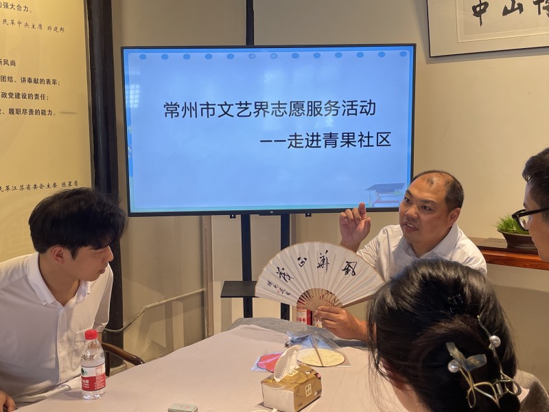 8月14日,应结对青果社区邀请,常州市文艺界志愿服务活动在青果巷原堂顺利开展,市文艺界志愿者代表杨东建参加活动。杨东建为中国书法家协会会员,文学艺术研究院创研部副主任,他在此次活动中,为天宁区的选调生在扇面上题字创作进行了书法辅导,现场指导如何用墨、布局、用印等知识。屋外暑气正浓,屋内凉风徐徐,选调生们围坐一桌,安静创作,在扇面上写着自己喜爱的内容,展现优秀的传统文化底蕴,洋溢着浓浓的文化艺术氛围。
