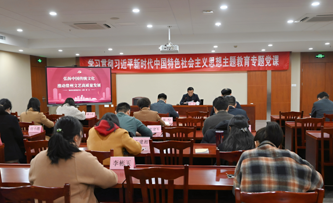 11月17日,常州市文联举办学习贯彻习近平新时代中国特色社会主义思想主题教育专题党课。市文联党组书记、主席舒文为全体党员干部主讲了题为《弘扬中国传统文化 推动常州文艺高质量发展》的党课。市文联党组成员、专职委员周勇刚,党组成员、副主席、秘书长蒋小萍和文联机关及直属单位全体党员干部职工参加,市委主题教育办第六联络组领导列席。活动由市文联党组成员、副主席蒋志文主持。