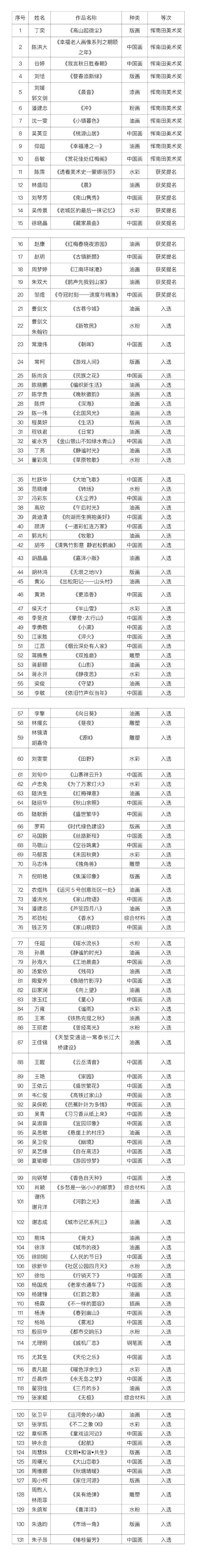常州文艺大展•第三届常州美术作品大展复评在监审委员会的全程监督下,本着“公开、公平、公正”的原则,评选出入选作品共131件,其中恽南田美术奖10件,获奖提名10件(名单附后,按奖次、及姓氏笔画为序)。