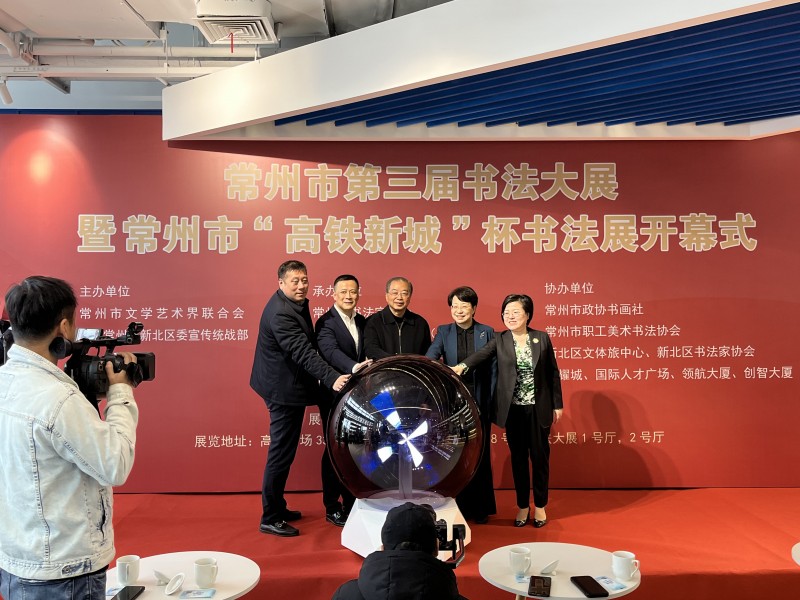 3月31日上午,由市文联、新北区委宣统部主办,市书协、常州高铁新城公司和常高新集团、新北区新桥街道办事处承办的常州市第三届书法大展颁奖仪式暨“高铁新城”杯书法展开幕式在新北区秋白书苑(常高新蔚蓝馆)举行。