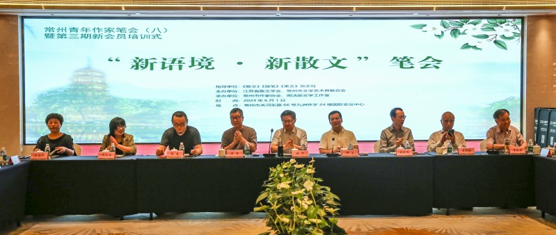 6月1日,由江苏省散文学会、常州市文联主办,常州市作协、周洁茹工作室承办的“新语境·新散文”笔会暨第三期新会员培训班,在常州九洲环宇大酒店国际会议中心举行。鲁迅文学院常务副院长徐可,江苏省散文学会会长姜琍敏,常州市文联党组书记、主席舒文,专家团队穆涛、祝晓风、张森、周洁茹、葛金华、谢燕红,常州市作协主席团部分成员以及常州市本地作家共100余人参加活动。活动由常州市作协主席李怀中主持。