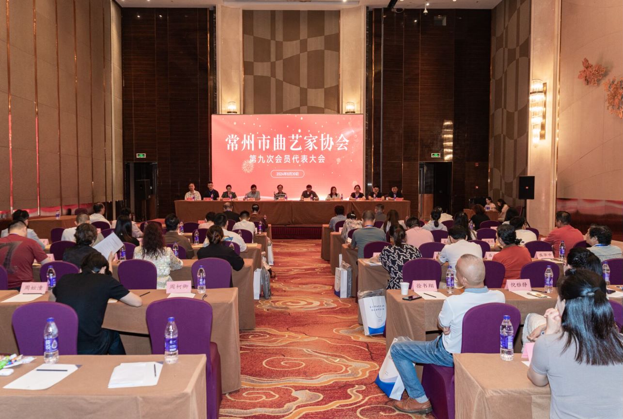 8月30日上午,常州市曲艺家协会第九次会员代表大会在常州市富力万达嘉华酒店三楼宴会厅顺利召开,来自全市各行各业的50多名会员代表参加大会。江苏省曲艺家协会、上海市曲艺家协会、苏州市曲艺家协会等协会发来贺信,常州市戏剧家协会副主席梅丽代表兄弟协会致贺辞。