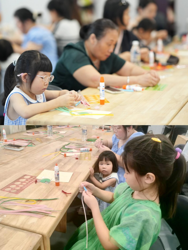 常州工艺美术协会会员、非遗手作老师张晓艳带领大家开启衍纸艺术手作体验。体验过程中,纸卷层叠间勾勒出“鱼戏莲叶间”的生动意象,完成了指尖上的江南叙事。